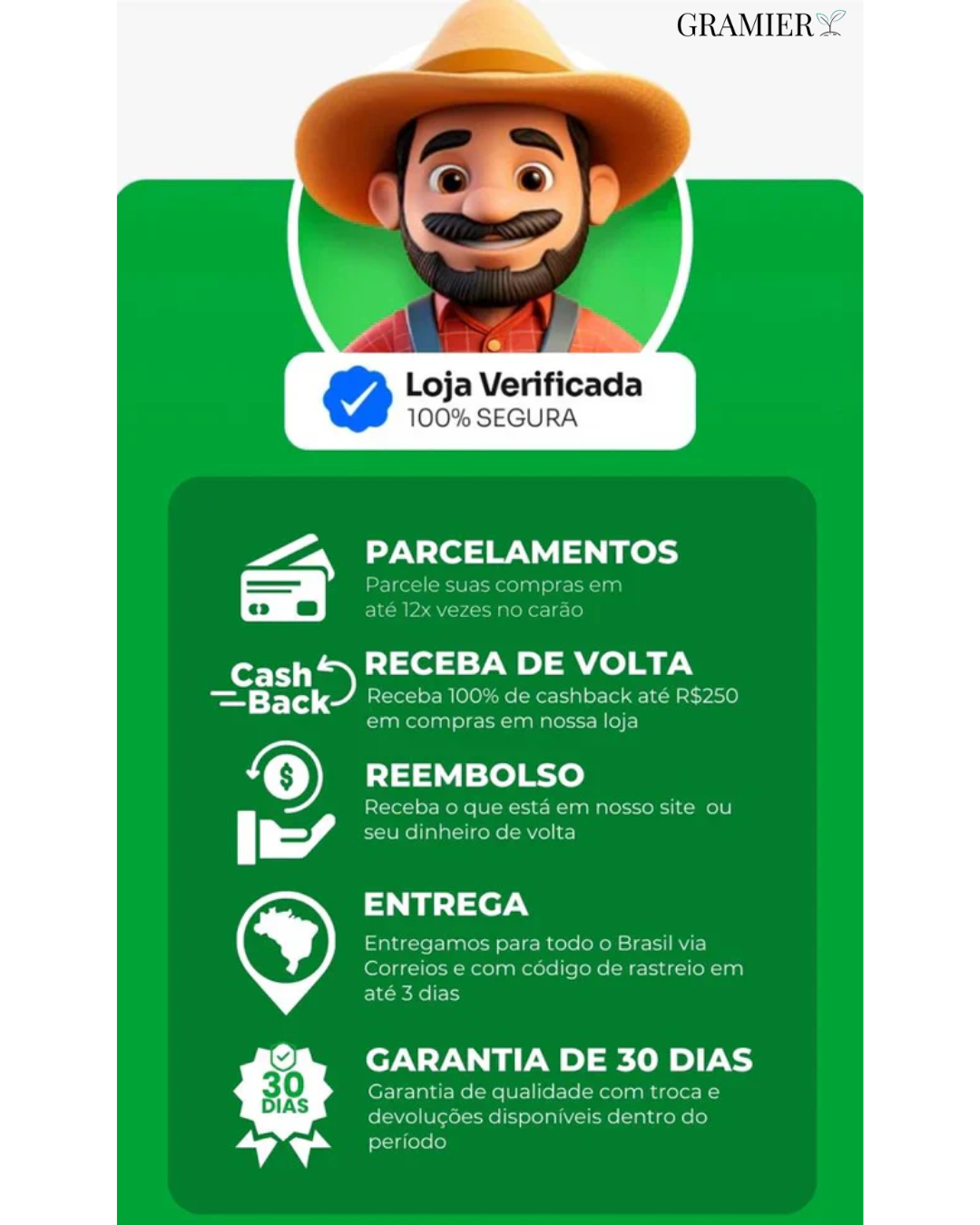 Fiz uma boa compra dessa vez, ja comprei outras que nem vingaram, achei a entrega rapida aqui para minha chácara, chegou em 8 dias com os correios.
